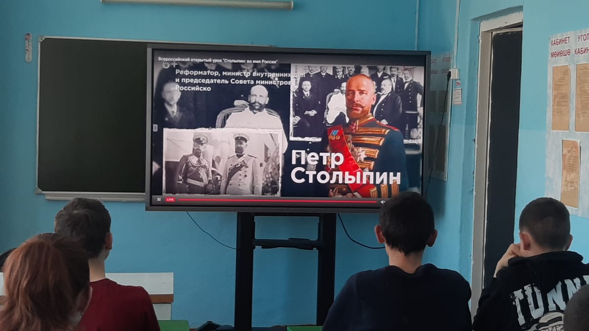 Всероссийский онлайн-открытый урок 160-лет со Дня Рождения П,А,Столыпина, русского государственного деятеля. Подключились учащиеся 9 класса (учитель истории Закирова Е.Б.