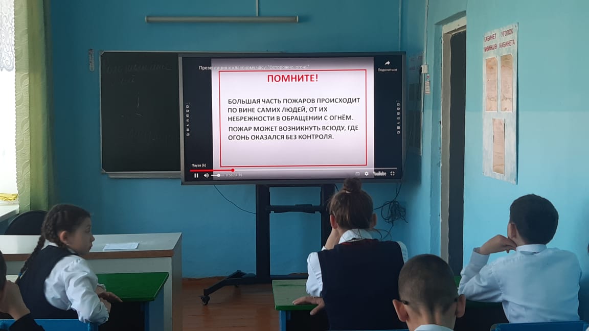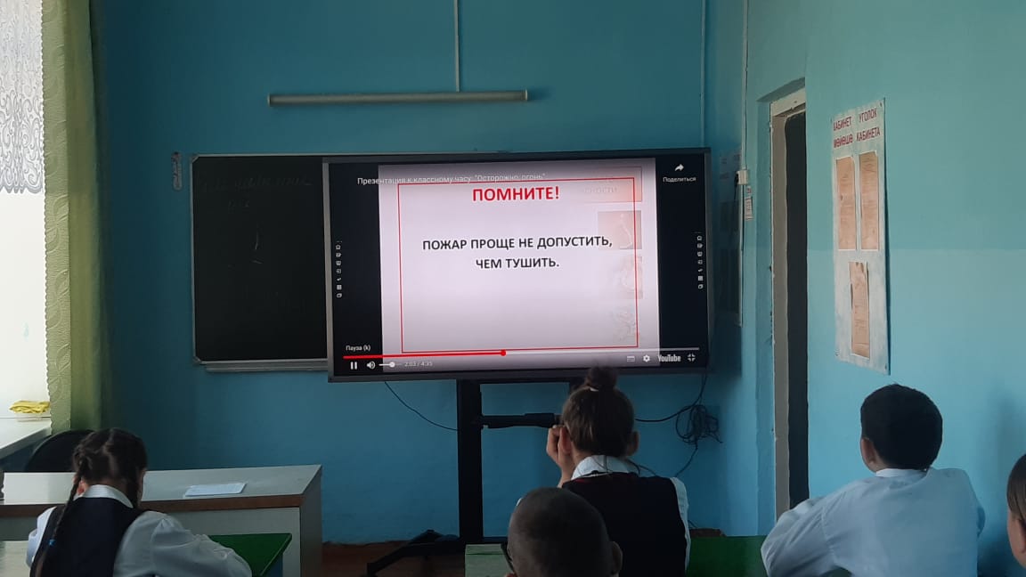 Классный час "Осторожно, огонь!" провела классный руководитель 6 класса Закирова Е.Б.